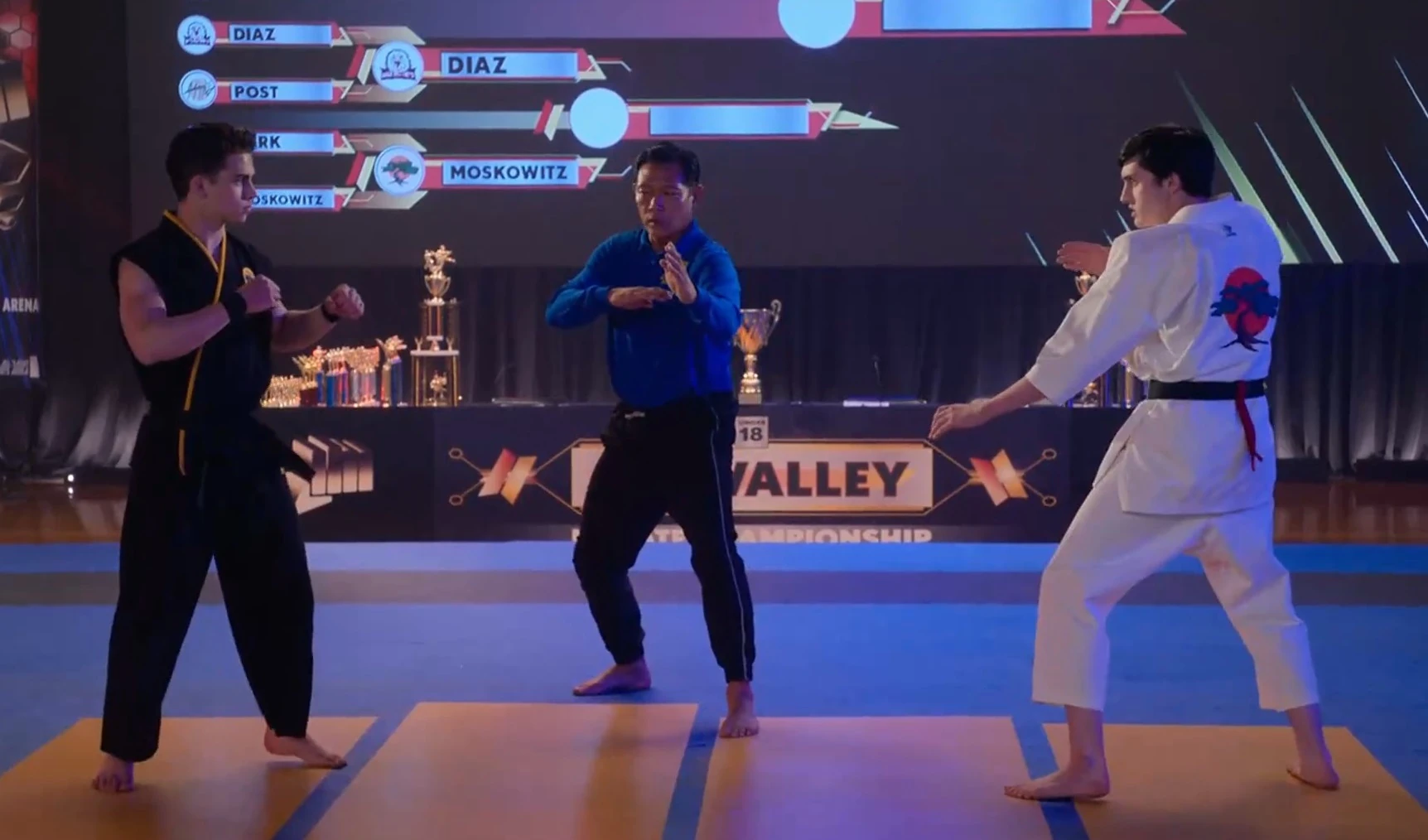 On the first day back at school, Eli and Demetri are greeted by their friends. At training, Eli and Demetri reveal to Johnny, Daniel, and Chozen their dojo name. They decided that the name should be Miyagi-Fang Karate.