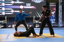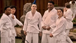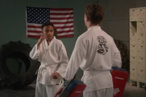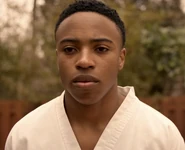 During the fight at the batting range, he is easily defeated by both Robby and Miguel, and the combined efforts of Tory and Sam's Miyagi-Do techniques. While training at Miyagi-Do for the Sekai Taikai, he easily bests Anthony.