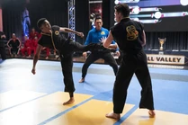By the time he joined Miguel and the others at Barcelona to participate in the Sekai Taikai, Kenny proved himself to be a formidable fighter for the team; against the captain of Redentores, Kenny scored two points by using his speed to outmaneuver and prevented the captain from tagging out, which led Miyagi-Do to advance to the next match. During the All-Dojo Brawl, he and Devon defeated several Dublin Thunder and Redentores students.