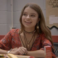 As the days pass, she sits at a table with Yasmine when Demetri demonstrates his science project. She is then shown cheerleading during an intramural soccer game. Eli attempts to wink at her after scoring a goal but she rolls her eyes and instead appears to flirt with a guy standing next to her.[5]