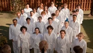 The morning after the fight, Miyagi-Do and Eagle Fang merge into one and are training at Miyagi-Do's dojo, with Johnny and Daniel as their senseis. Now befriending each other, Nathaniel and Bert exchange high-fives before training.