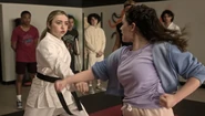 At the All Valley Sports Arena, Demetri reveals to Eli and Moon that he got into CalTech. He also tells the two that he turned down MIT's offer so he can be reunited with Eli. Tory and Zara begin their fight but Tory loses focus as Zara had taunted her just before their match began, allowing Zara to score 5 points in the first round. After the first round ends, Robby tells Tory that he loves her and the two kiss, which makes Tory even more focused. The second round begins with Tory fully focused and she successfully lands 2 knockdowns before knocking out Zara (and her upper incisors) after scoring several points, causing her to win the match and becomes the Sekai Taikai female champion. Tory also taunts Zara the same way the latter did in Barcelona.